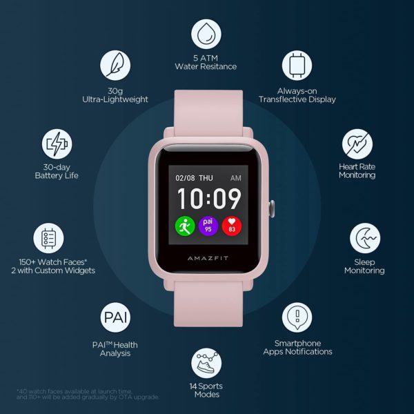 • Amazfit Bip S Lite Smart Watch Fitness Tracker for Android iPhones, 30 Days Battery Life,14 Sports Modes, Heart Rate & Sleep Monitor, 5 ATM Waterproof, 1.28” Always-on Display, for Men Women(Pink)