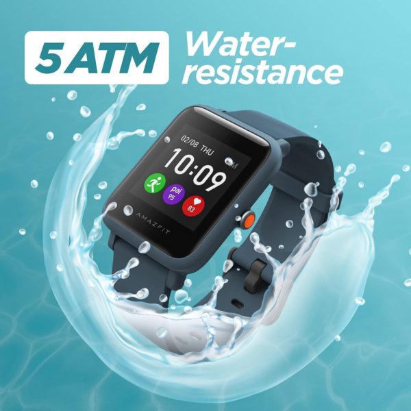 38. A the Bip S lite has a water resistance rating of IP67 which does well while in the swimming Sport modes , the watch is not meant to be used while showering as the heat from the shower can damage the watch
