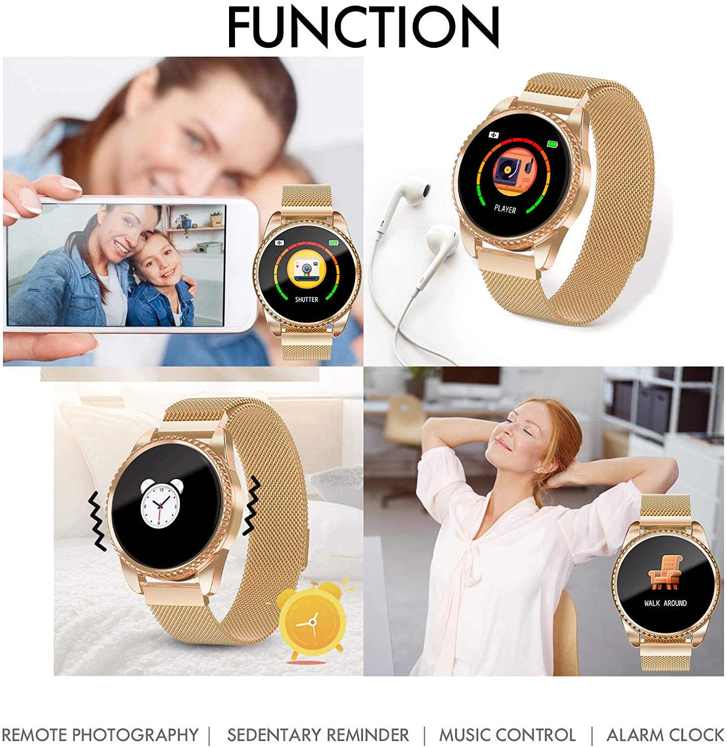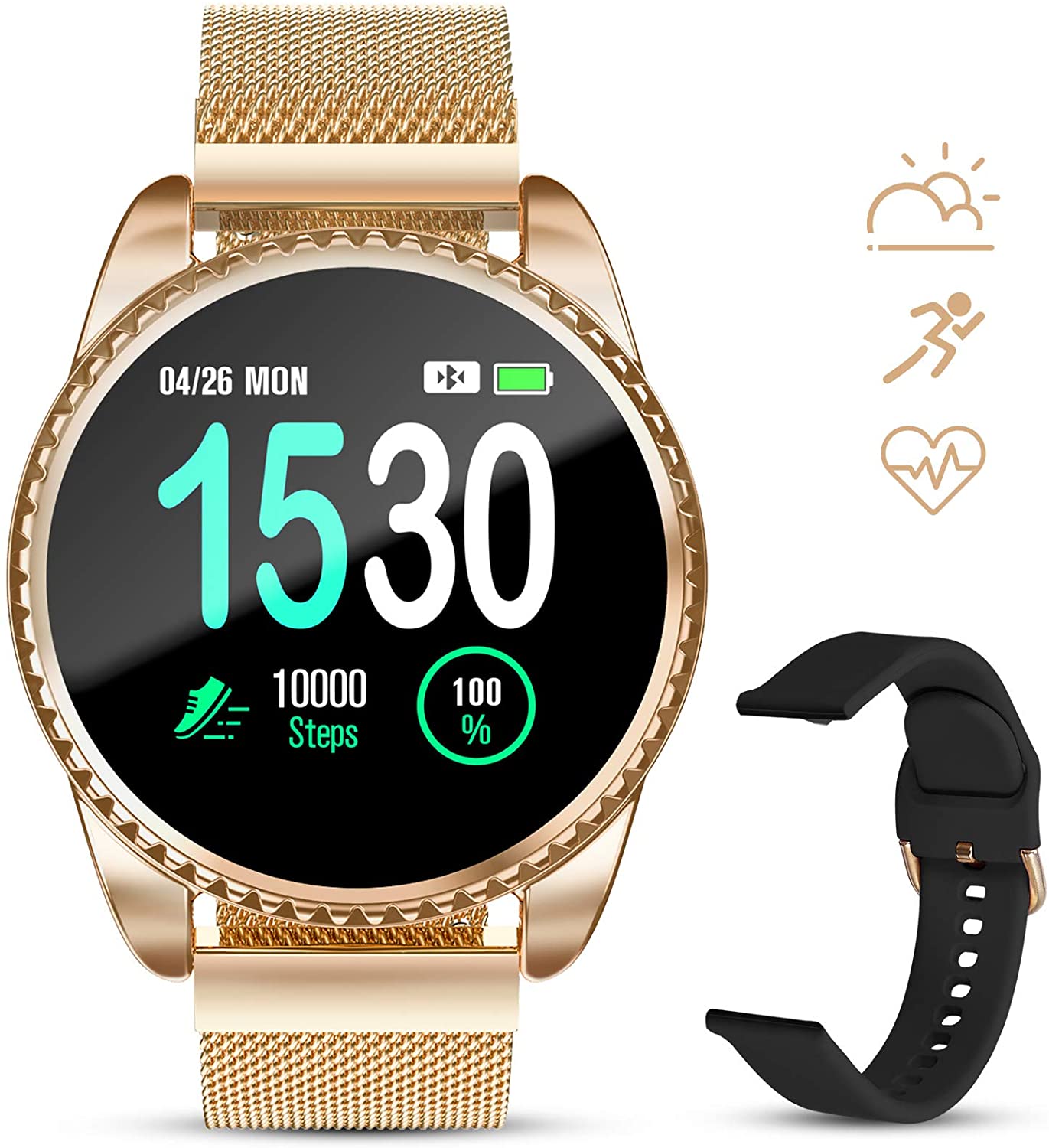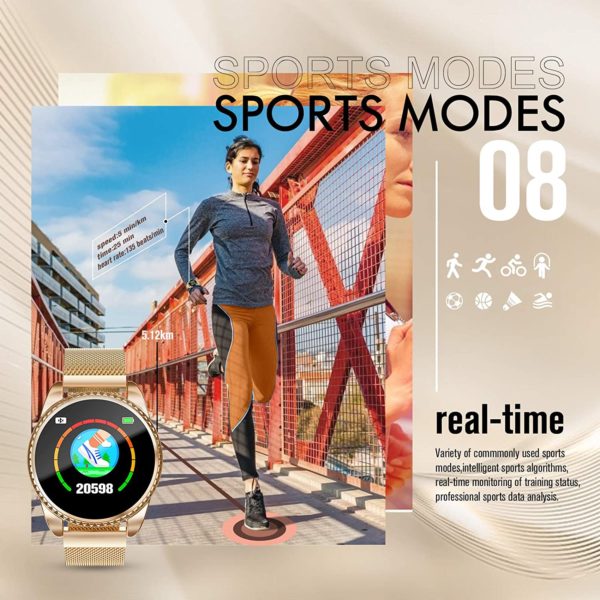 GOKOO Smart Watch for Women Fitness Tracker with Heart Rate Blood Oxygen Monitor Pedometer Calories Sport SmartWatch Bluetooth Compatible with Android iOS (Gold)