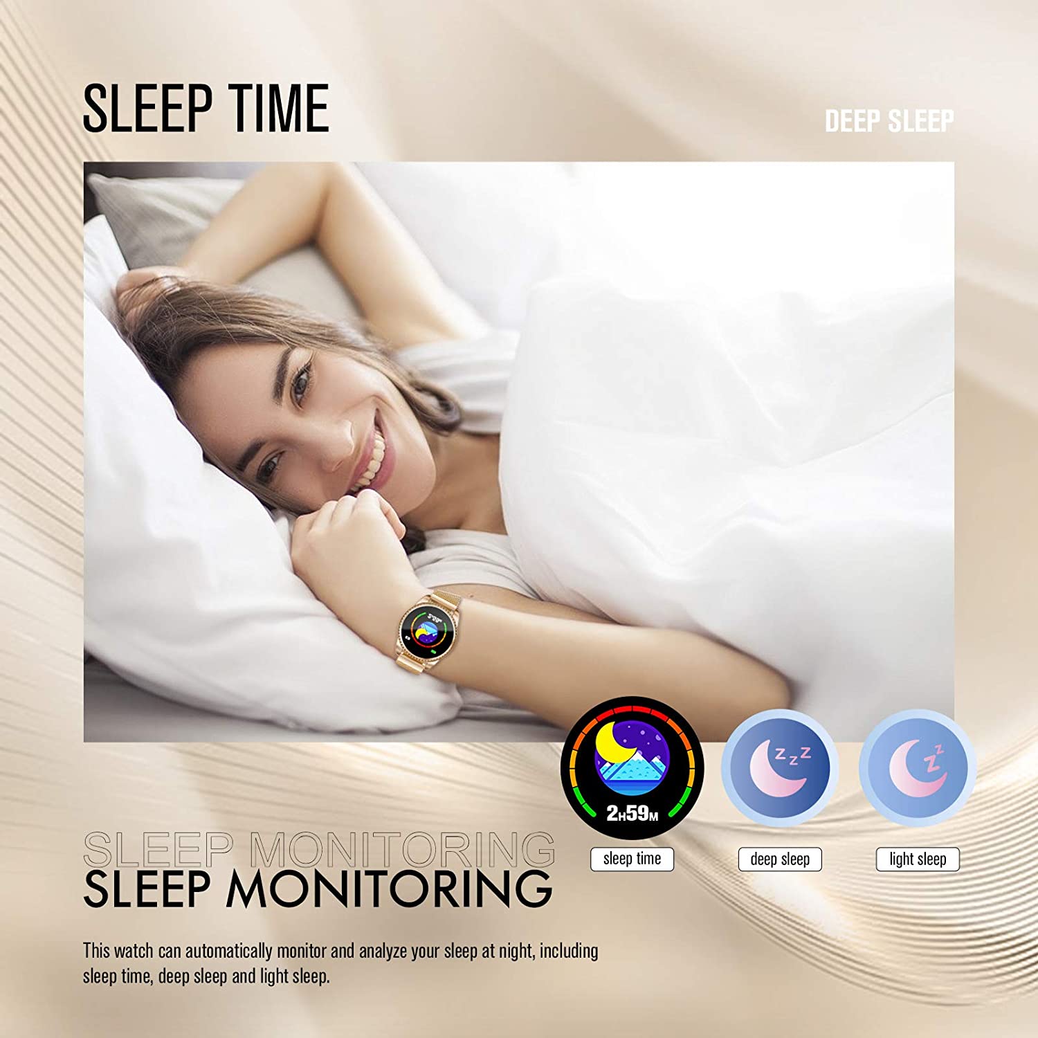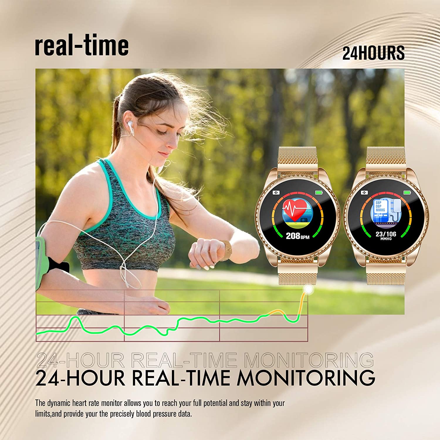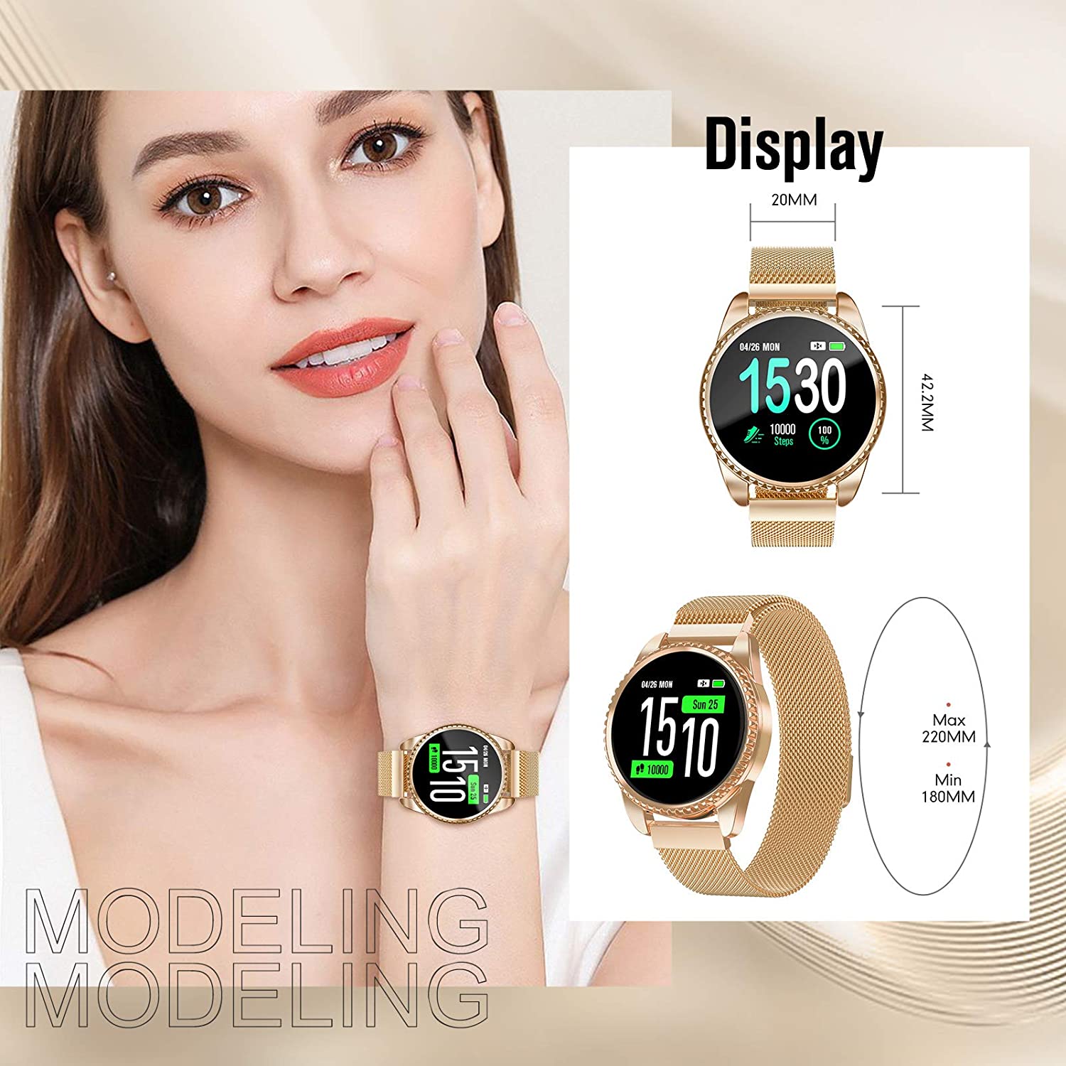 GOKOO Smart Watch for Women Fitness Tracker with Heart Rate Blood Oxygen Monitor Pedometer Calories Sport SmartWatch Bluetooth Compatible with Android iOS (Gold)