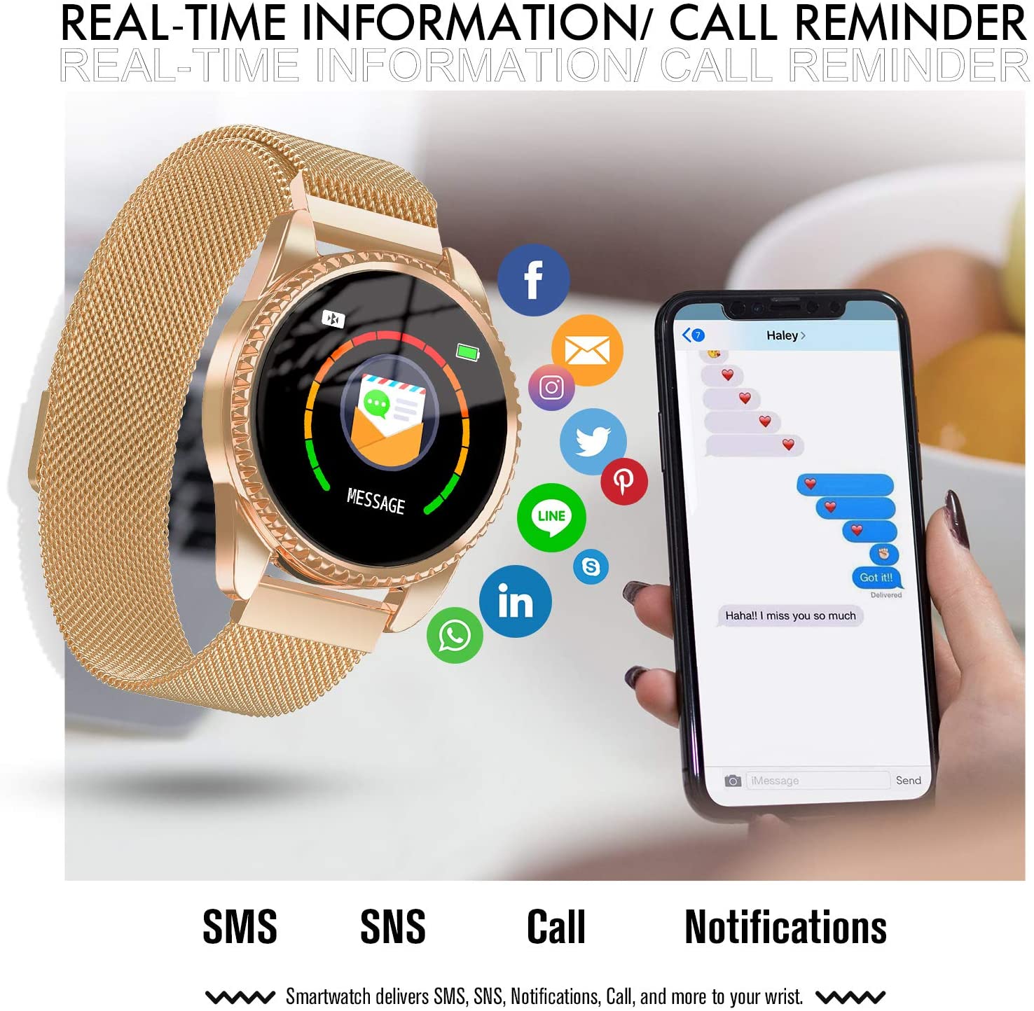Supported ApplicationFitness Tracker, Weather, Sleep Monitor, Messages, Phone, Alarm, GPS, Pedometer, Camera, Heart Rate MonitorSee more