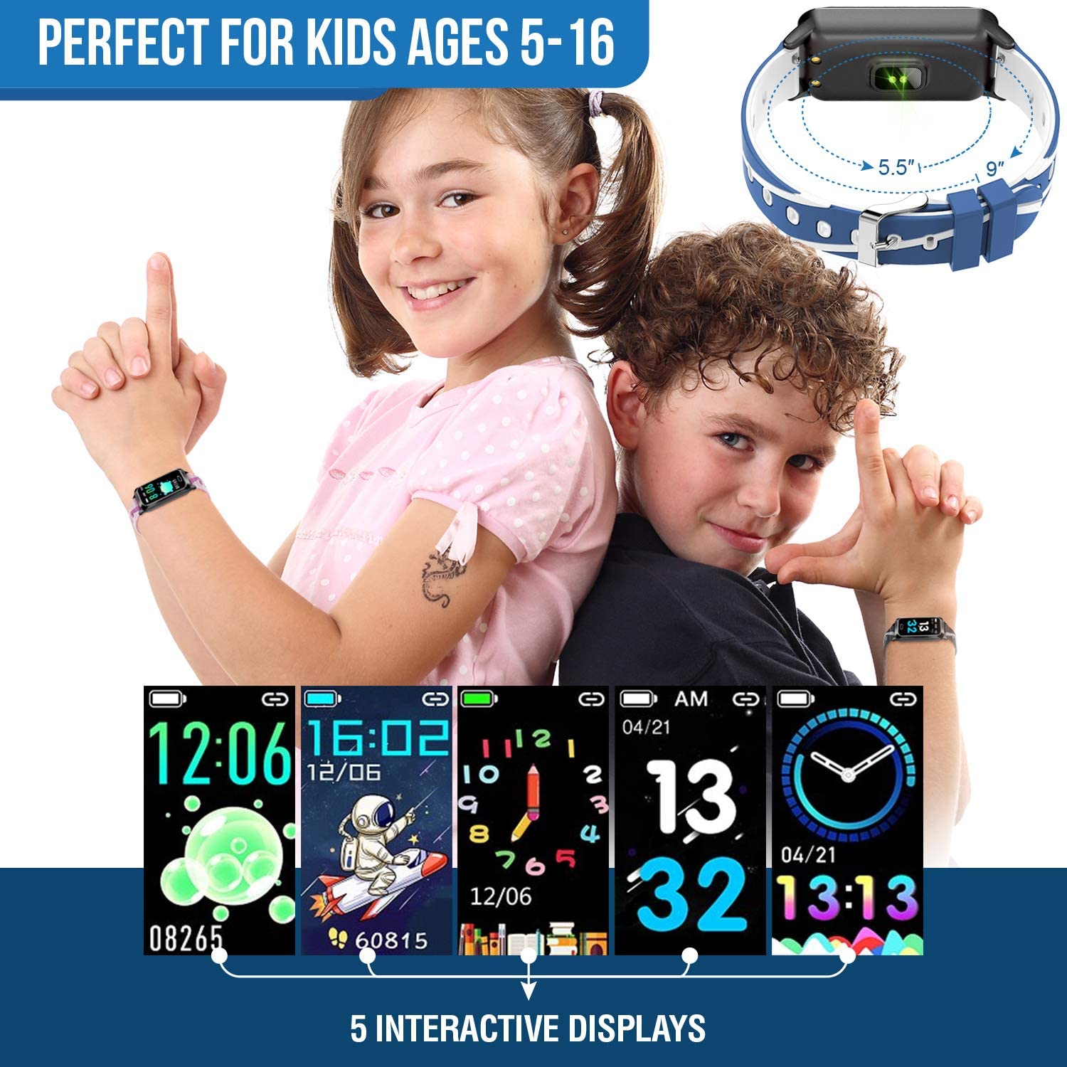 19. A It’s got options, my boys are 7&8 and they have fairly small wrists. Fits them with much room to grow. Even fits my wrist. Hope that helps. These watches are a great choice for kids who want an “apple” watch like my kids but I refused to spend $300 on a watch for an 8 year old. I’m very happy with these watches.