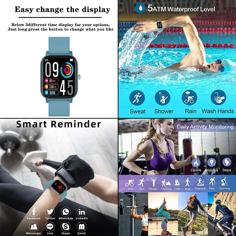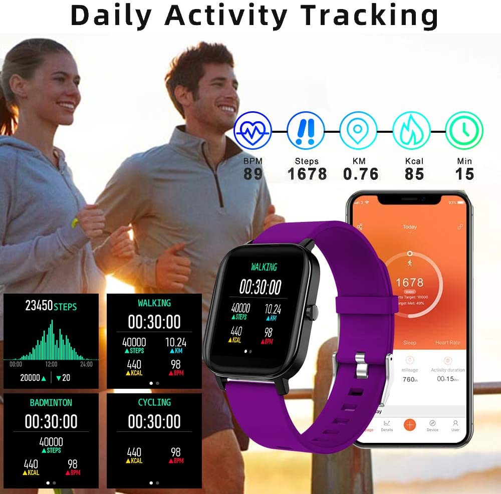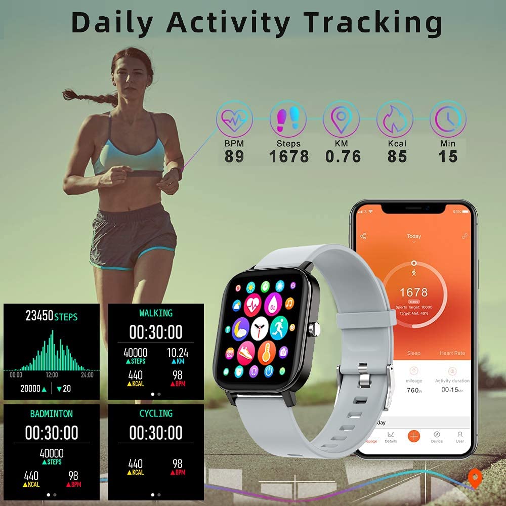Smart Watch, FirYawee Smartwatch for Android Phones and iOS Phones,Fitness Tracker Waterproof IP68 with Heart Rate Monitor and Sleep Monitor,Step and Distance Counter,Smart Watch for Men Women