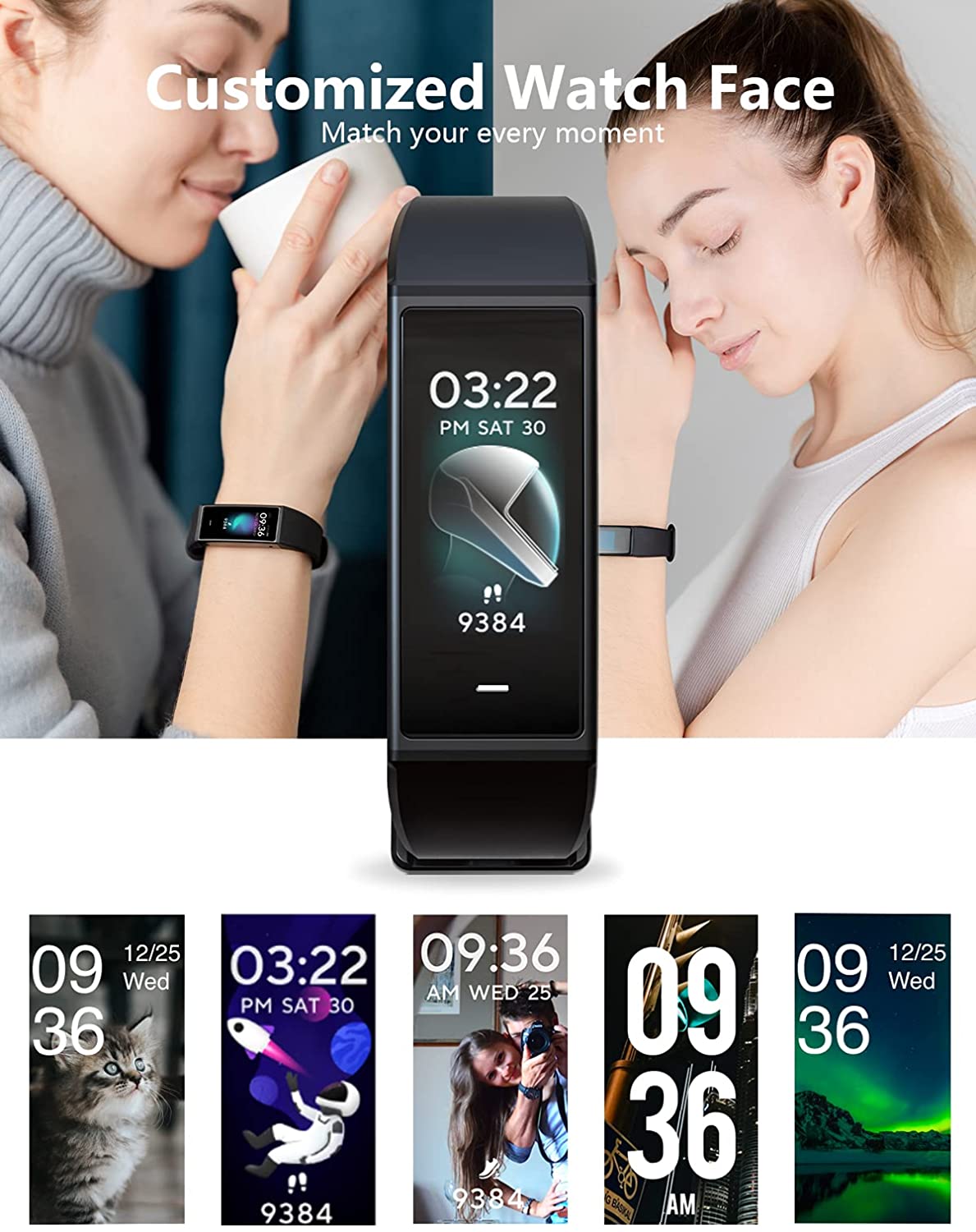 • WYZE Band Fitness Tracker with Alexa Built-in, Activity Tracker Watch with Heart Rate Monitor, Smart Fitness Band with Step Counter, Calorie Counter, Pedometer Water Resistant, Black